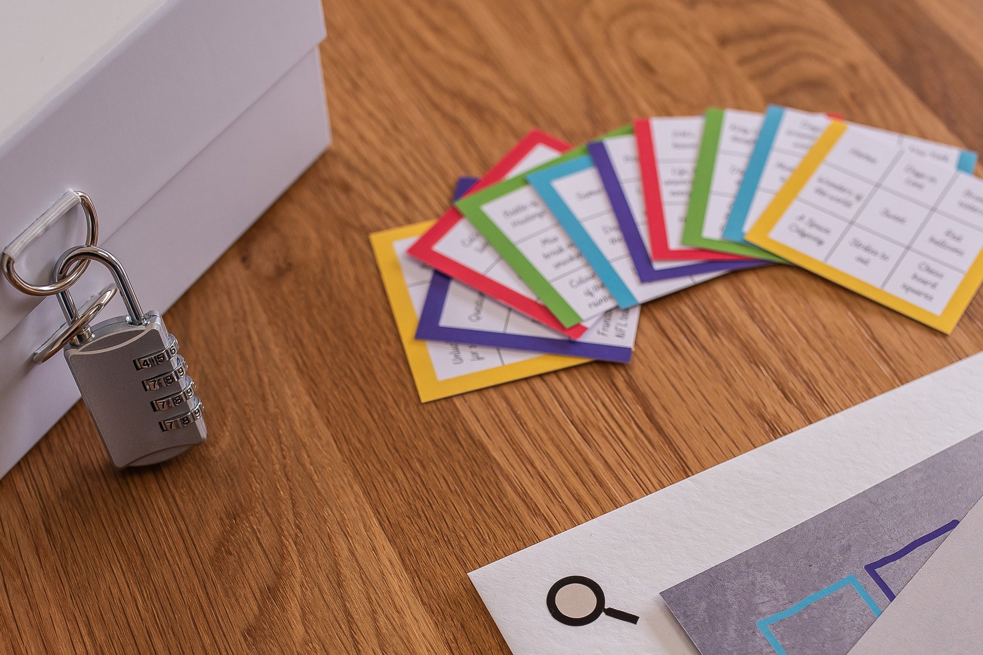 Players must find the secret message hidden inside a puzzle wordsearch and then decipher some number cards to spell out the solution.
