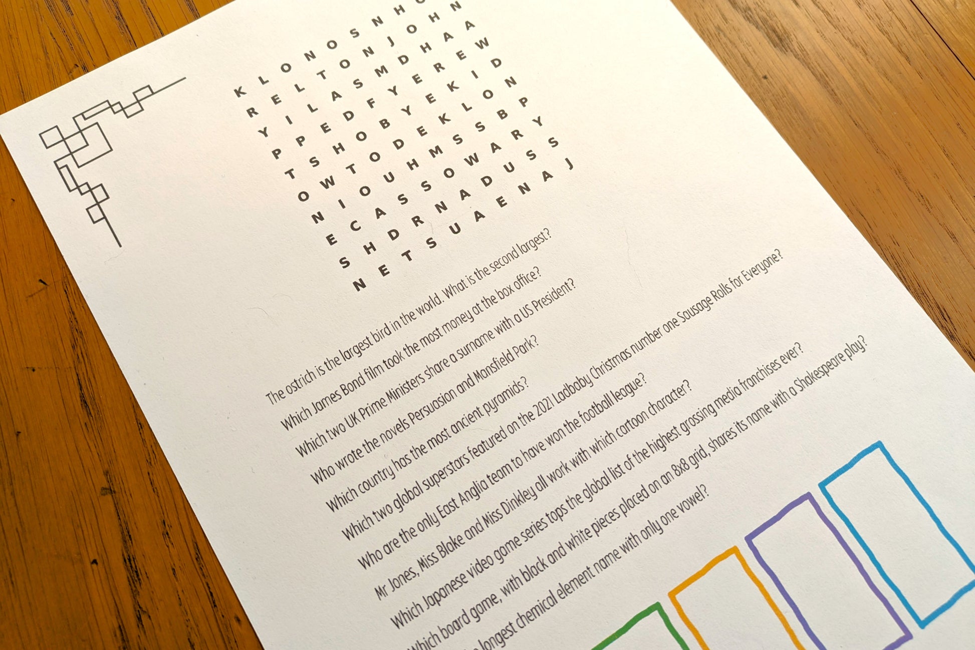This add-on to the Ivy Box allows you to personalise the puzzle wordsearch with questions about your event or organisation. Only one personalisation option is required per order, regardless of how many boxes you need.